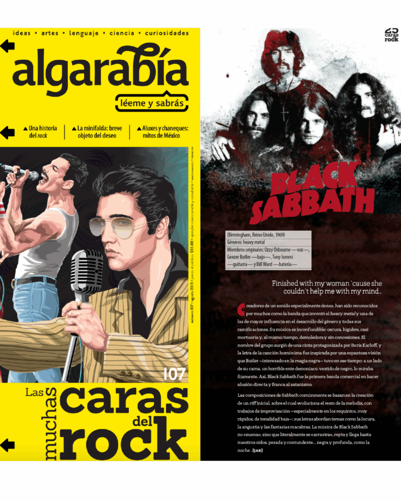 Creadores de un sonido especialmente denso, han sido reconocidos por muchos como la banda que inventó el heavy metal y una de las de mayor influencia en el desarrollo del género y todas sus ramificaciones. Su música es inconfundible: oscura, lúgubre, casi mortuoria y, al mismo tiempo, demoledora y sin concesiones. El nombre del grupo surgió de una cinta protagonizada por Boris Karloff, y la letra de la canción homónima fue inspirada por una espantosa visión que Butler —interesado en la magia negra— tuvo en ese tiempo: a un lado de su cama, un horrible ente demoniaco, vestido de negro, lo miraba fijamente. Así, Black Sabbath fue la primera banda comercial en hacer alusión directa y franca al satanismo.